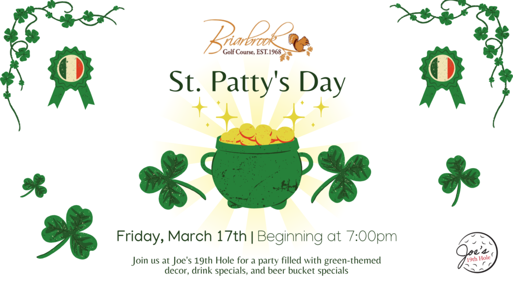 Get ready to shamrock and roll with us this St. Patrick’s Day! Join us at Joe’s 19th Hole for a party filled with green-themed decor, drink specials, and beer bucket specials. Wear your greenest outfit and bring your best Irish accent! Let’s celebrate this festive occasion together!
